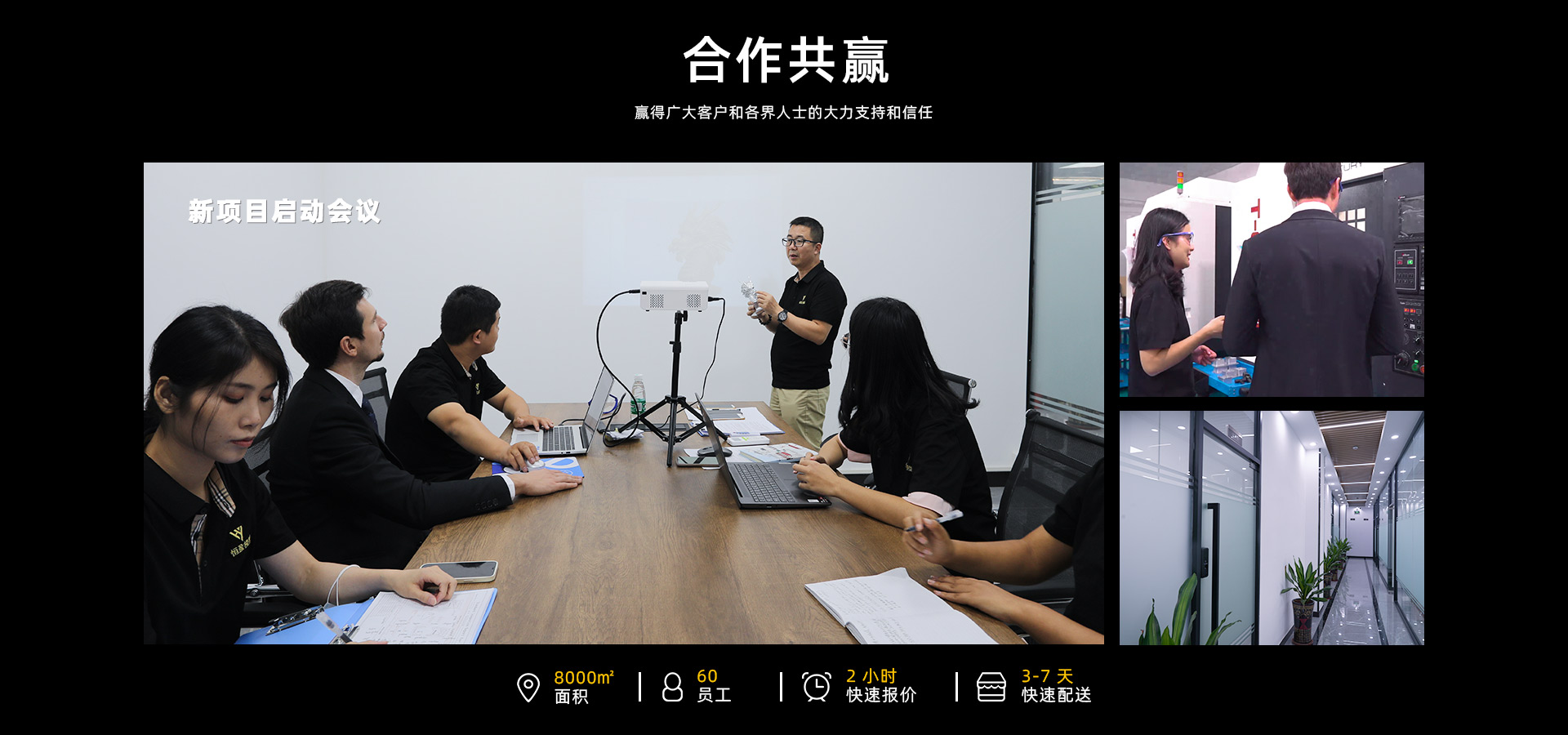 5 sets of 5-axis CNC Milling Machines, 20 over sets 3, 4-axis CNC milling machines, 40 sets CNC turning lathe machines. And with CMM & Projector in AQ department.